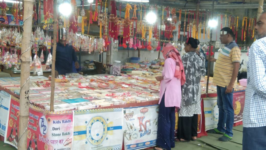 बाजार में हर बार की तरह इस बार भी नवीनतम राखियों का आकर्षक बाजार सज धजकर तैयार हो गया है। जिसमें कोलकाता की आर्टिफिशियल राखी, कार्टून राखी जिसमें मोटू-पतलू, डोरेमॉन के साथ साथ छोटे बच्चों के लिए लाइट एवं म्यूज़िक वाली राखियों से सुस्सजित है। जिसमें माताए एवं बहनों द्वारा सुबह से ही खरदीदारी करते हुए नजर आ रहे है। इस बार मार्केट में 10 रुपये से 250 रुपये वाली राखी बाजार में उपलब्ध है। गत वर्ष पांच रुपये से राखी मिल रही थी।