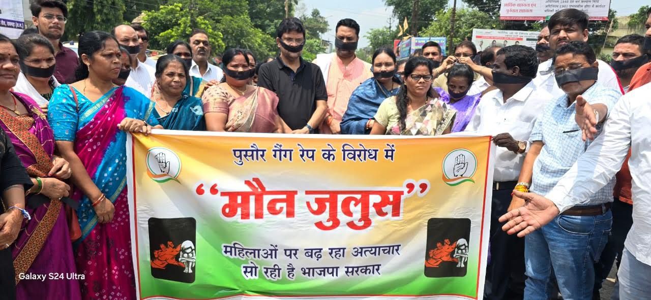 कांग्रेस ने सामूहिक दुष्कर्म के विरोध में काली पट्टी बांधकर निकाला मौन जुलूसरायगढ़। शुक्रवार को जिला कांग्रेस कार्यालय में आयोजित प्रेसवार्ता में उमेश पटेल ने बलौदाबाजार में हुई हिंसा, कांग्रेस नेताओं की गिरफ्तारी और रायगढ़ में एक आदिवासी महिला के साथ हुए सामूहिक दुष्कर्म जैसे गंभीर मुद्दों को उठाते हुए भाजपा सरकार को कटघरे में खड़ा किया है।