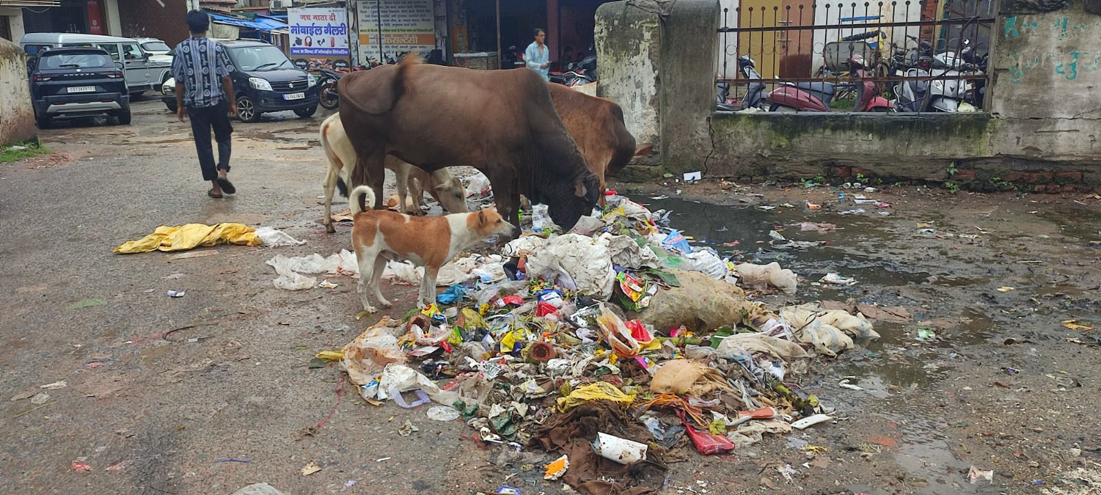 यह नजारा मालीडीपा मुख्य मार्ग का है। इस स्थान में पहले कुछ घर के लोग ही कचरा फेंकते थे, लेकिन अब यहां पूरा डंपिंग यार्ड बन गया है। यहां निगम के सफाईकर्मी भी नियमित रूप से नहीं आते हैं, जिससे कचरे का उठाव भी नहीं होता।