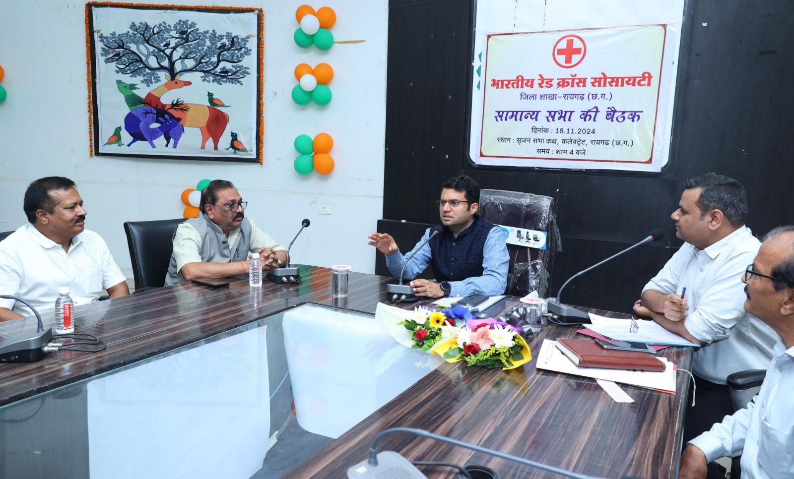 रायगढ़, 18 नवम्बर 2024/ कलेक्टर श्री कार्तिकेया गोयल की अध्यक्षता में भारतीय रेडक्रॉस सोसाइटी के सामान्य सभा की बैठक कलेक्ट्रेट के सृजन सभा कक्ष में आयोजित हुई। जिसमें डिप्टी कलेक्टर एवं निर्वाचन अधिकारी श्री महेश शर्मा तथा भारतीय रेडक्रॉस सोसाइटी के सदस्यों की उपस्थिति में जिला प्रबंध समिति के सदस्य हेतु 18 लोगों ने नामांकन फॉर्म भरा। जिनमें संंतोष कुमार अग्रवाल, मुकेश शर्मा, डॉ.एच.एस.उराव, डॉ.भानु प्रताप पटेल, रामनिवास मोड़ा, संतोष कुमार टिबरेवाल, डॉ.मुुकुन्द अग्रवाल, अनिल कुमार अग्रवाल, प्रो.अम्बिका वर्मा, दिनेश कुमार अग्रवाल, प्रेम नारायण मौर्य, गोपी सिंह ठाकुर, डॉ.सिद्धार्थ सिन्हा, शिव कुमार शर्मा, बिरेन्द्र कुमार सिंह, संजीव चौहान, विजय अग्रवाल, दीपक डोरा शामिल थे। निर्वाचन अधिकारी महेश शर्मा द्वारा निर्वाचन नामावली की सदस्यों की नामांकन फार्म का मिलान किया गया। तत्पश्चात उपस्थित सदस्यों के समक्ष नाम की सूची से मिलान कर घोषणा की गई। जिला प्रबंध समिति में सभी 18 नामांकित सदस्यों को विभागीय पदेन सदस्यों का द्वारा सहमति के आधार पर निर्विरोध निर्वाचित घोषित किया गया।