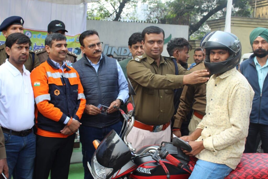राष्ट्रीय सड़क सुरक्षा माह 2025 के अंतर्गत रायगढ़ पुलिस ने यातायात नियमों के पालन को बढ़ावा देने नि:शुल्क हेलमेट वितरण किया गया । विदित हो कि पुलिस अधीक्षके दिव्यांग कुमार पटेल के अनूठी पहल के तहत बिना हेलमेट दुपहिया वाहन चालकों के खिलाफ मोटर व्हीकल एक्ट के तहत कार्रवाई कर नि:शुल्क हेलमेट वितरित किए जा रहे हैं । इसी क्रम में आज अतिरिक्त पुलिस अधीक्षक आकाश मरकाम के मार्गदर्शन में आज थाना कोतरारोड़ एवं यातायात पुलिस द्वारा पतरापाली चौक पर बिना हेलमेट दुपहिया वाहन चालकों को नि:शुल्क हेलमेट वितरण किया गया । पुलिस अधीक्षक श्री पटेल ने वाहन चालकों को हेलमेट पहनने के महत्व और सड़क पर सुरक्षा के प्रति जागरूक रहने की आवश्यकता पर जोर दिया। उन्होंने बताया कि हेलमेट केवल यातायात नियमों का पालन करने के लिए नहीं, बल्कि जीवन बचाने के लिए एक आवश्यक साधन है। इस अवसर पर जिंदल स्टील एंड पावर लिमिटेड (जेएसपीएल) के सहयोग से चालकों को नि:शुल्क हेलमेट वितरित किए गए। कार्यक्रम में पुलिस अधीक्षक दिव्यांग कुमार पटेल, अतिरिक्त पुलिस अधीक्षक आकाश मरकाम, थाना प्रभारी कोतरारोड़ निरीक्षक त्रिनाथ त्रिपाठी, निरीक्षक अनुरंजन लकड़ा, और जेएसपीएल के प्रतिनिधि संजीव चौहान व अन्य उपस्थित रहे। कोतरारोड़ क्षेत्र में आयोजित इस विशेष अभियान के दौरान दर्जनों वाहन चालकों को हेलमेट वितरित किए गए। इस पहल का उद्देश्य न केवल नियम तोड़ने वालों को सजा देना, बल्कि उन्हें सड़क पर सुरक्षित रहने की प्रेरणा देना भी है। पुलिस और स्थानीय उद्योग के इस संयुक्त प्रयास को आम जनता द्वारा सराहा गया। राष्ट्रीय सड़क सुरक्षा माह के तहत रायगढ़ पुलिस द्वारा जागरूकता और सुरक्षा बढ़ाने के लिए आगे भी इस तरह के अभियान जारी रहेंगे।