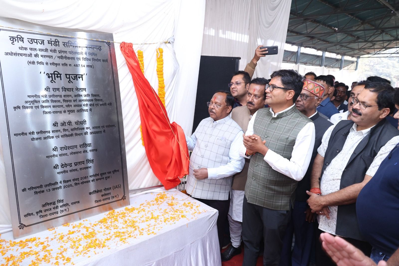 कृषि मंत्री रामविचार नेताम ने वित्त मंत्री ओ.पी.चौधरी के साथ 4.87 करोड़ से पटेलपाली थोक मंडी के उन्नयन कार्य का किया भूमिपूजन
