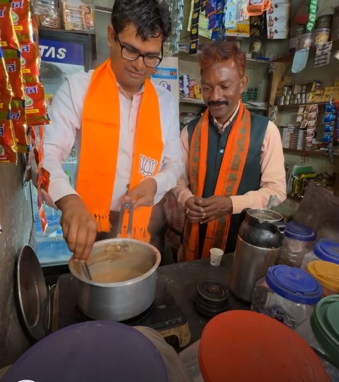रायगढ़: छत्तीसगढ़ के वित्त मंत्री ओपी चौधरी रविवार को रायगढ़ नगर निगम के मेयर (महापौर) पद के प्रत्याशी जीवर्धन चौहान की चाय दुकान पर पहुंचे। यहां उन्होंने न सिर्फ चाय बनाने में मदद की, बल्कि खुद चाय बनाकर लोगों को भी परोसी। इस दौरान मंत्री चौधरी और जीवर्धन चौहान ने स्थानीय लोगों से बातचीत की।