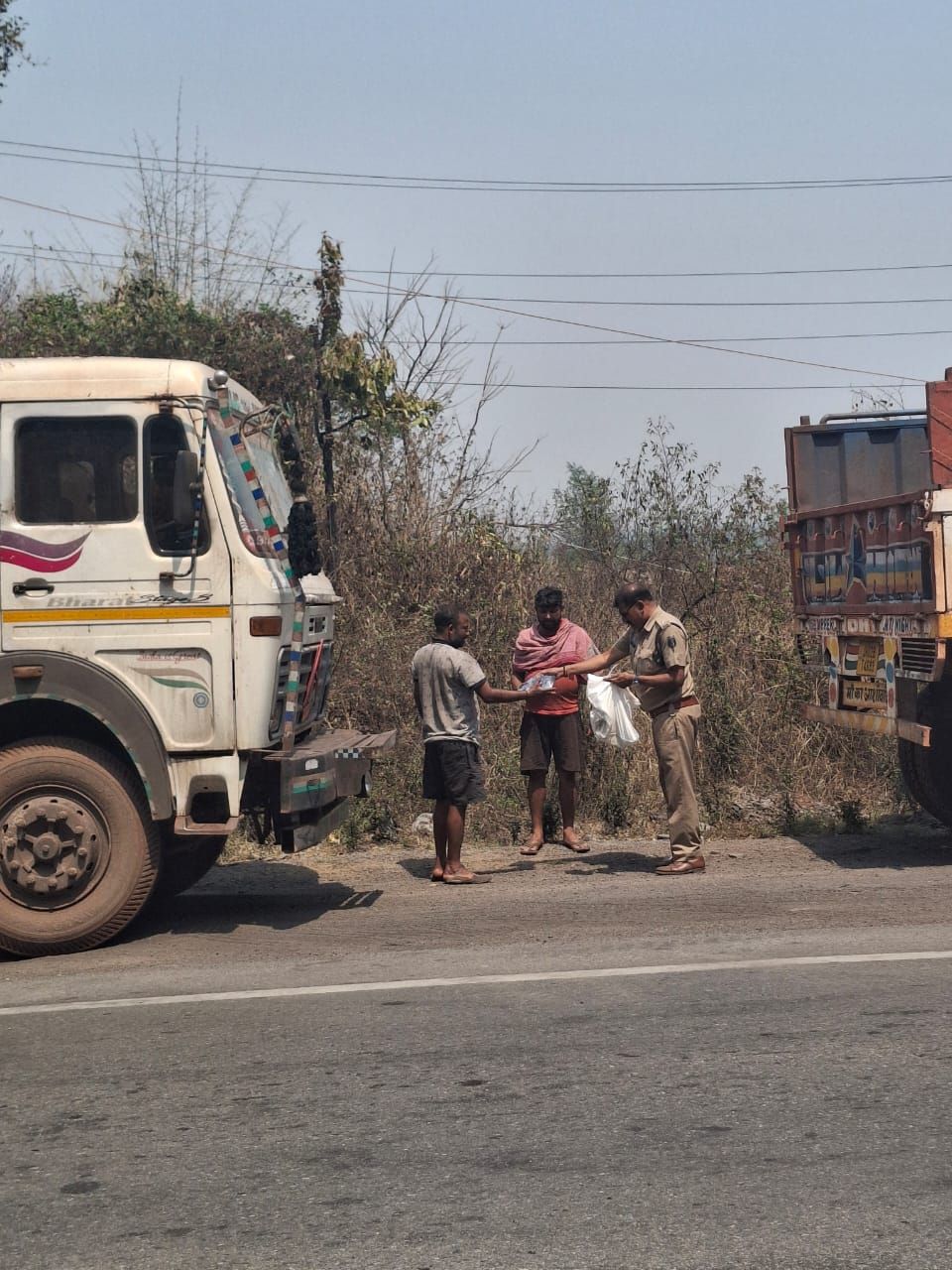 ट्रैफिक जवानों ने दिखाई मानवता, भीषण गर्मी में वाहन चालकों को बांटा पानी