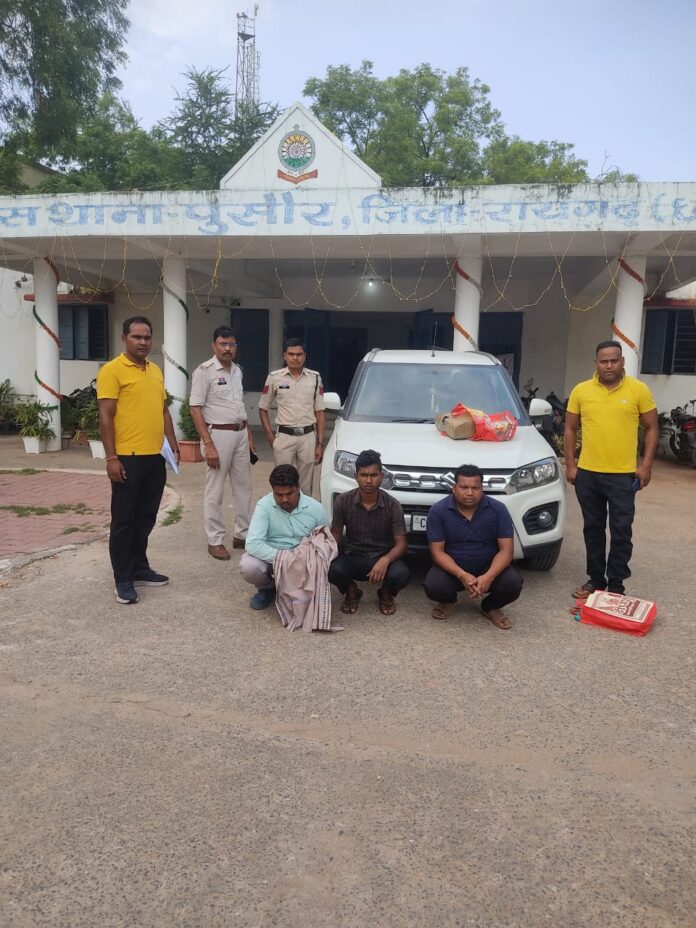 ओडिशा से ब्रेजा कार में गांजा ला रहे तीन तस्कर गिरफ्तार, 5 किलो गांजा समेत 11 लाख की संपत्ति जब्त