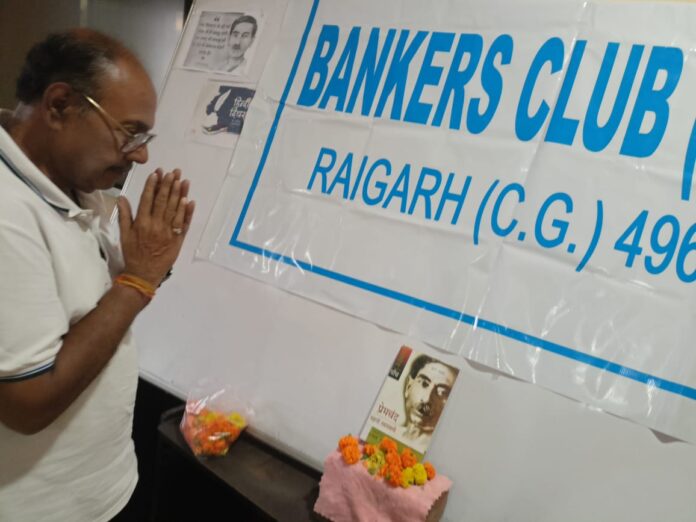 स्थानीय जिला ग्रन्थालय के सभागार में बैंकर्स क्लब( रिटायर्ड) के झन्डे तले मुंशी प्रेमचंद की जयंती पर एक परिचर्चा आयोजित की गयी। कार्यक्रम के प्रारंभ में पर्मपरानुसार प्रेमचंद जी के चित्र पर उपस्थित सदस्यों द्वारा पुष्प अर्पण कर नमन किया गया।