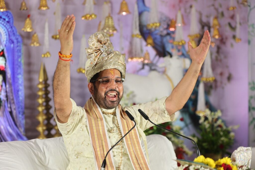 भागवत कथा में सुनाया श्रीकृष्ण – रुक्मणी विवाह प्रसंग: सुंदर झांकी देख मंत्रमुग्ध हुए भक्त, कुड़ुमकेलिया ऐरन परिवार द्वारा रायगढ़ श्रेष्ठा होटल में करवाया जा रहा आयोजन