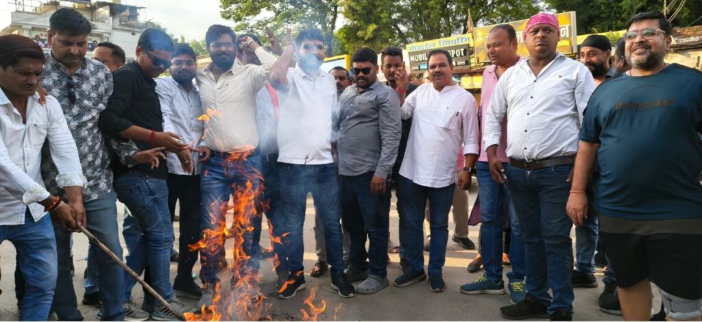 मोदी की मां पर अपमानजनक टिप्पणी पर क्षुब्ध भाजपाइयों द्वारा राहुल तेजस्वी का पुतला दहन, मां का अपमान कांग्रेस की संस्कृति :भाजयुमो