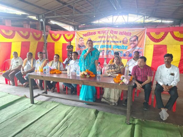 रायगढ़। बंजारी धाम में मनाया गया विश्वकर्मा जयंती,जहां कार्यक्रम के मुख्य अतिथि के रूप में शामिल रहे लैलूंगा विधायक श्रीमती विद्यावती सिंदार जहां कार्यक्रम के प्रारंभ में मुख्य अतिथि के हाथों श्री श्री विश्वकर्मा जी के छाया चित्र पर पूजा अर्चना किया गया, तत्पश्चात कार्यक्रम में उपस्थित सभी अतिथियों का स्वागत सम्मान किया गया। तो वही विश्वकर्मा जयंती के उपलक्ष शामिल हुए कीर्तन मंडली के द्वारा भजन कीर्तन एवं उड़िया सॉन्ग के साथ अपनी प्रस्तुति प्रदान किये और उन्होंने सभी अतिथियों का मन को आनंदित कर दिए,कार्यक्रम की कड़ी में स्वास्तिक मजदूर सेवा समिति के कार्यकर्ताओं के द्वारा विश्वकर्मा जयंती के उपलक्ष में पधारे सभी मजदूर भाई एवं बहनों का फूल माला पहना कर स्वागत किया गया एवं उनको उपहार स्वरूप संगठन के तरफ से टिफिन बॉक्स गिफ्ट के रूप में प्रदान किया गया जहां मजदूर भाई एवं बहनों ने संगठन के द्वारा दिए गए उपहार को लेकर अपनी खुशी जाहिर किये। और वही कार्यक्रम को संबोधित करते हुए जिला अध्यक्ष पिंटू सिंह के द्वारा सभी क्षेत्रवासियों को विश्वकर्मा जयंती की बधाई एवं शुभकामनाएं देते हुए उन्होंने आज रायगढ़ जिले में स्थापित हजारों कॉल कारखाना में कार्यरत मजदूरों को अपने संदेश के माध्यम से यह बताया कि अगर कभी भी किसी भी समय किसी मजदूर भाई एवं बहन को हमारी जरूरत पड़ती है,तो हम हमेशा आपके सहयोग के लिए तत्पर रहेंगे। तो वहीं विश्वकर्मा जयंती कार्यक्रम में उपस्थित रहे तराईमाल बीडीसी घनश्याम मालाकार, पंचराम मालाकार, हेमलाल साहू बीडीसी पूर्व बासनपाली,भूमिका मालाकार बीडीसी पूर्व तराईमाल,पत्रकार सुनील बेहरा पत्रकार निरंजन गुप्ता,विकास चौहान एवं मजदूर सेवा समिति के प्रदेश उपाध्यक्ष श्रीमती पूजा साहू,संयोजक राजेश सिंह मरकाम, बिलासपुर संभागीय अध्यक्ष सरोज श्रीवास,बंसी लाल साहू जिला उपाध्यक्ष, भूपेंद्र ग्वेल, नीरज बहेरा, राज किशोर सिंह जिला उपाध्यक्ष, संतोष साहनी ब्लॉक उपाध्यक्ष, ब्लॉक अध्यक्ष राजकुमार सिंह, ब्लॉक अध्यक्ष नरेश मेहर