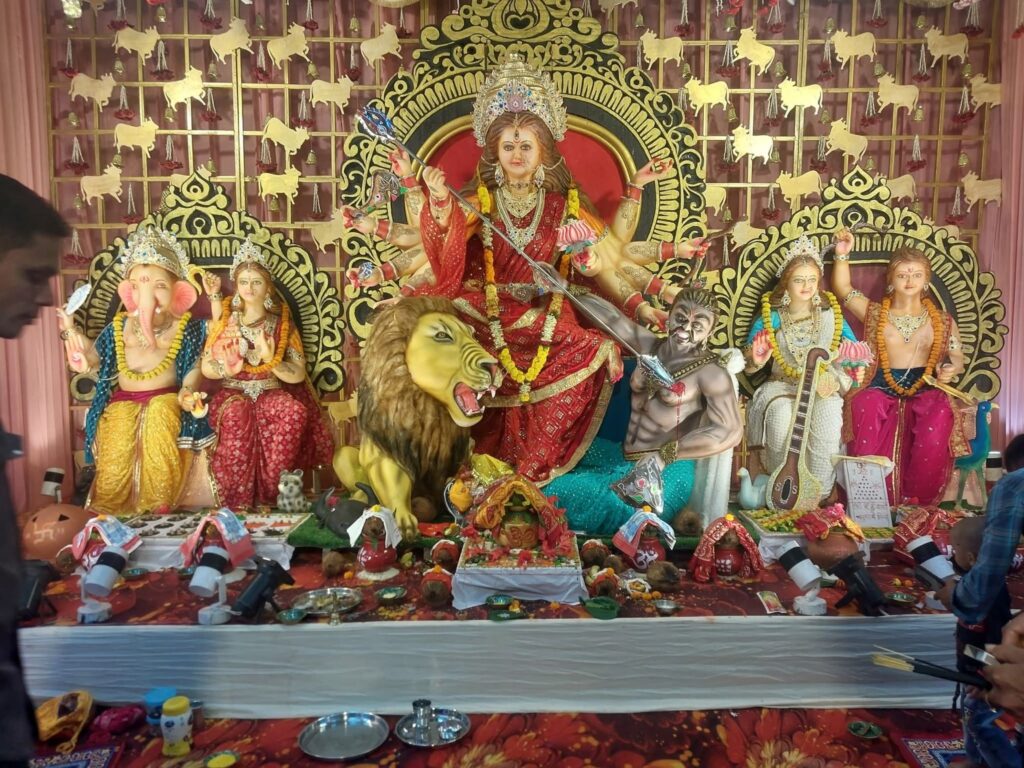 गुजराती पारा में महिसासुर मर्दिनी माँ दुर्गा की स्थापित हुई आकर्षक प्रतिमा
