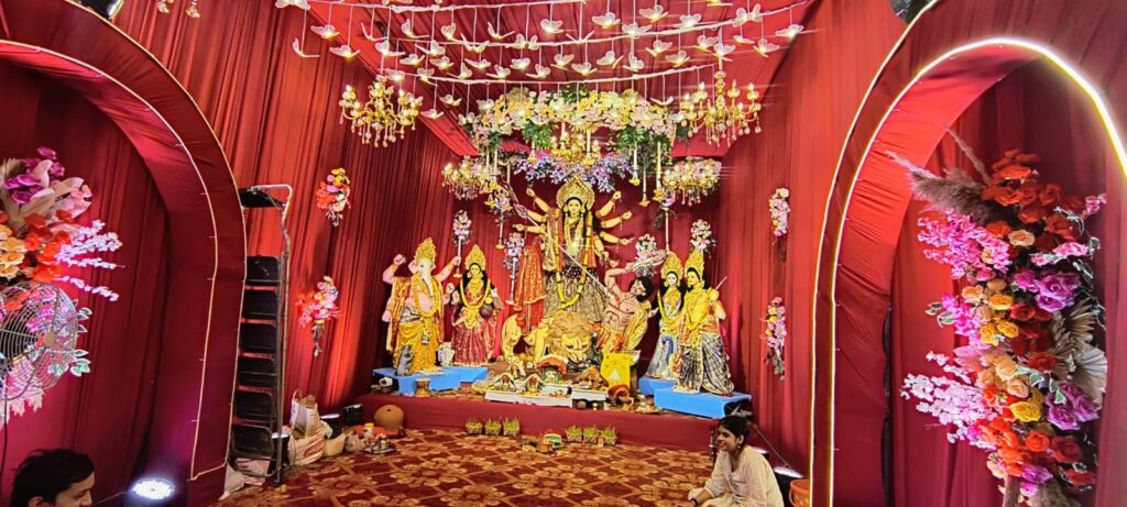 दरोगा पारा में स्थापित मॉ दुर्गा की आकर्षक प्रतिमा बनी आकर्षण का मुख्य केन्द्र
