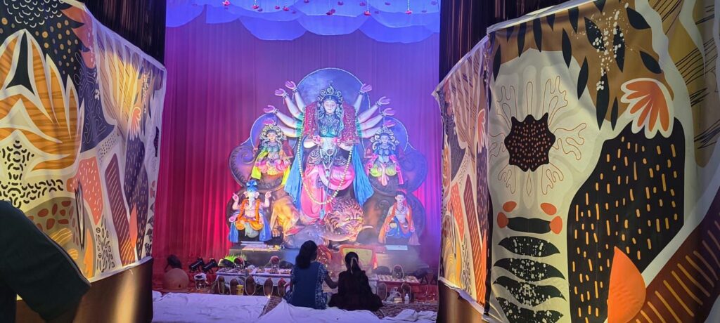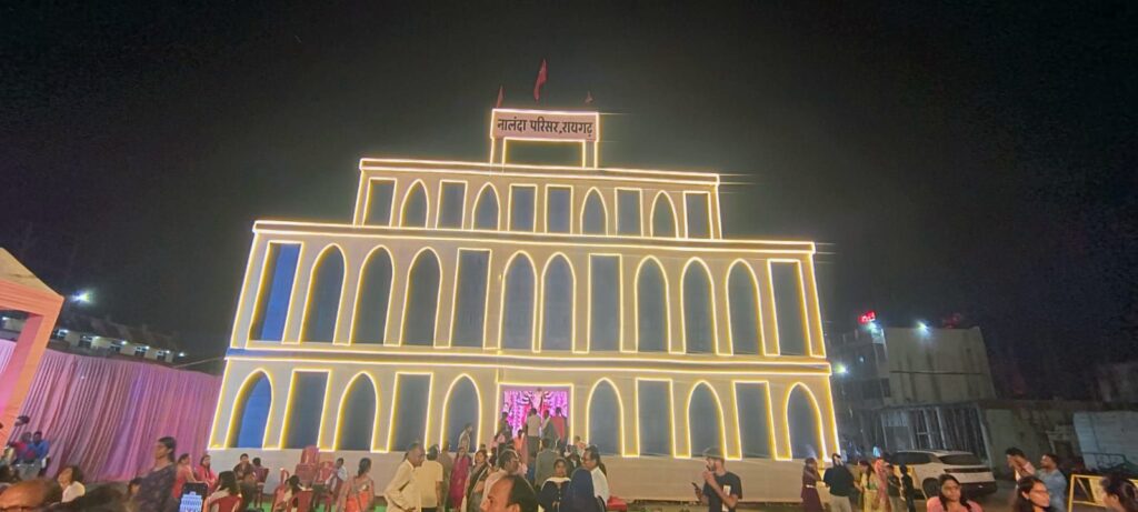 संजीवनी अस्पताल परिसर में इस बार नालंदा परिसर की थीम पर बना पंडाल