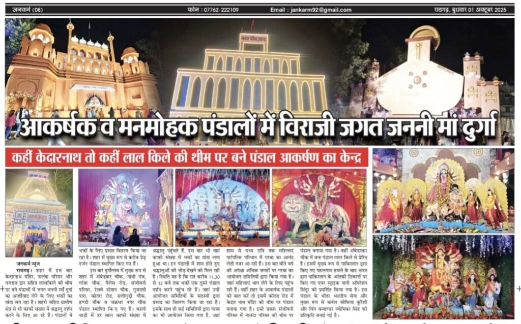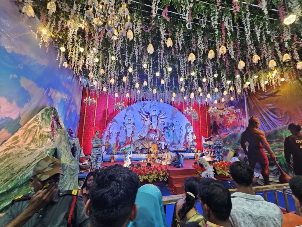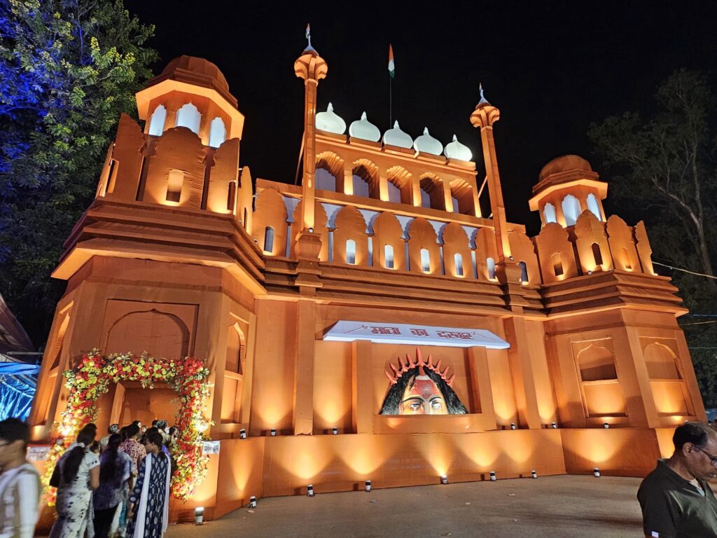 कैप्शन – अंबेडकर चौक में लाल किले की थीम पर बना भव्य पंडाल व ऑपरेशन सिंदूर का समर्पित झांकियां