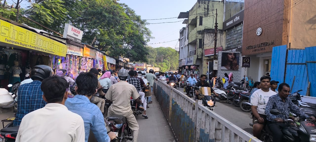 त्यौहारी सीजन में दुकानो के सामने बना अघोषित पार्किंग, रोड में दुकान लगाने वाले भी बिगाड़ रहे है यातायात व्यवस्था