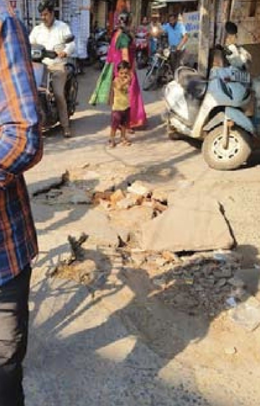 पुरानी हटरी मार्ग पर नाली की स्लैब टूटी, आवागमन में आमजन को हो रही समस्या, दुर्घटना की बढ़ी आशंका, जिम्मेदार भी है बेपरवाह