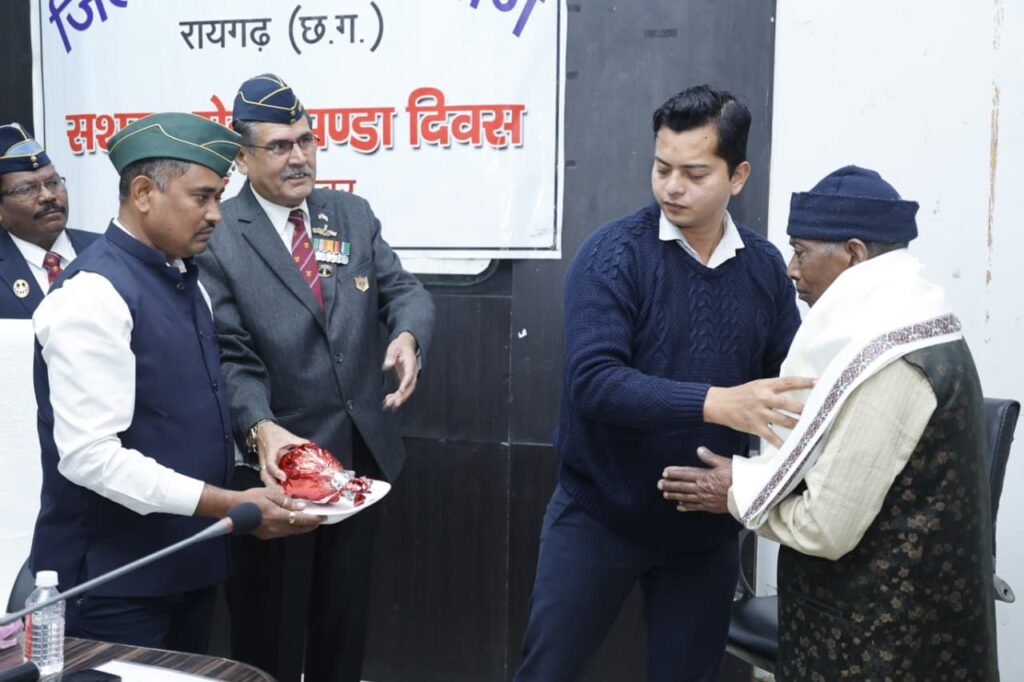 रायगढ़ के हॉनरी सूबेदार मेजर सुखू राम बारबा को उत्कृष्ट सेवा के लिए किया गया सम्मानित