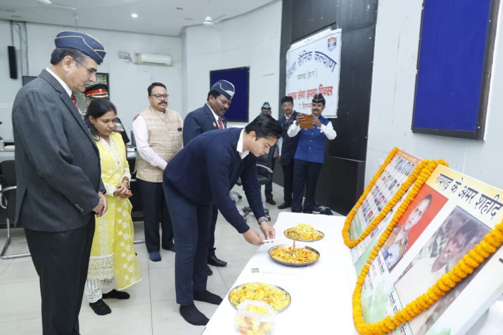 रायगढ़, 7 दिसम्बर 2025/ मातृभूमि की सुरक्षा में अपने प्राणों की आहुति देने वाले वीर शहीदों की स्मृति में तथा सेवारत और भूतपूर्व सैनिकों के सम्मान में आज जिले में सशस्त्र सेना झंडा दिवस गरिमामय वातावरण में मनाया गया। कलेक्टोरेट परिसर स्थित सृजन सभा कक्ष में आयोजित कार्यक्रम की अध्यक्षता एडीएम श्री अपूर्व टोप्पो ने की। कार्यक्रम का शुभारंभ छत्तीसगढ़ के अमर शहीदों के चित्र पर पुष्पांजलि अर्पित कर किया गया। एडीएम श्री अपूर्व प्रियेश टोप्पो ने सैनिकों के अद्वितीय योगदान और उनके महत्व पर प्रकाश डालते हुए कहा कि सेना परिवार से जुड़ाव गर्व का विषय है। उन्होंने सैनिकों के सर्वांगीण सहयोग का आश्वासन देते हुए नागरिकों से उनका सम्मान बनाए रखने का आग्रह किया।