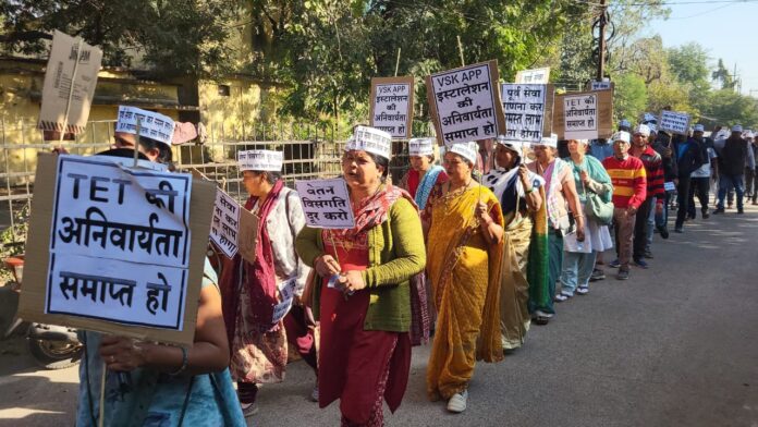 वेतन विसंगति और वीएस ऐप के विरोध में सड़क पर उतरे सहायक शिक्षक