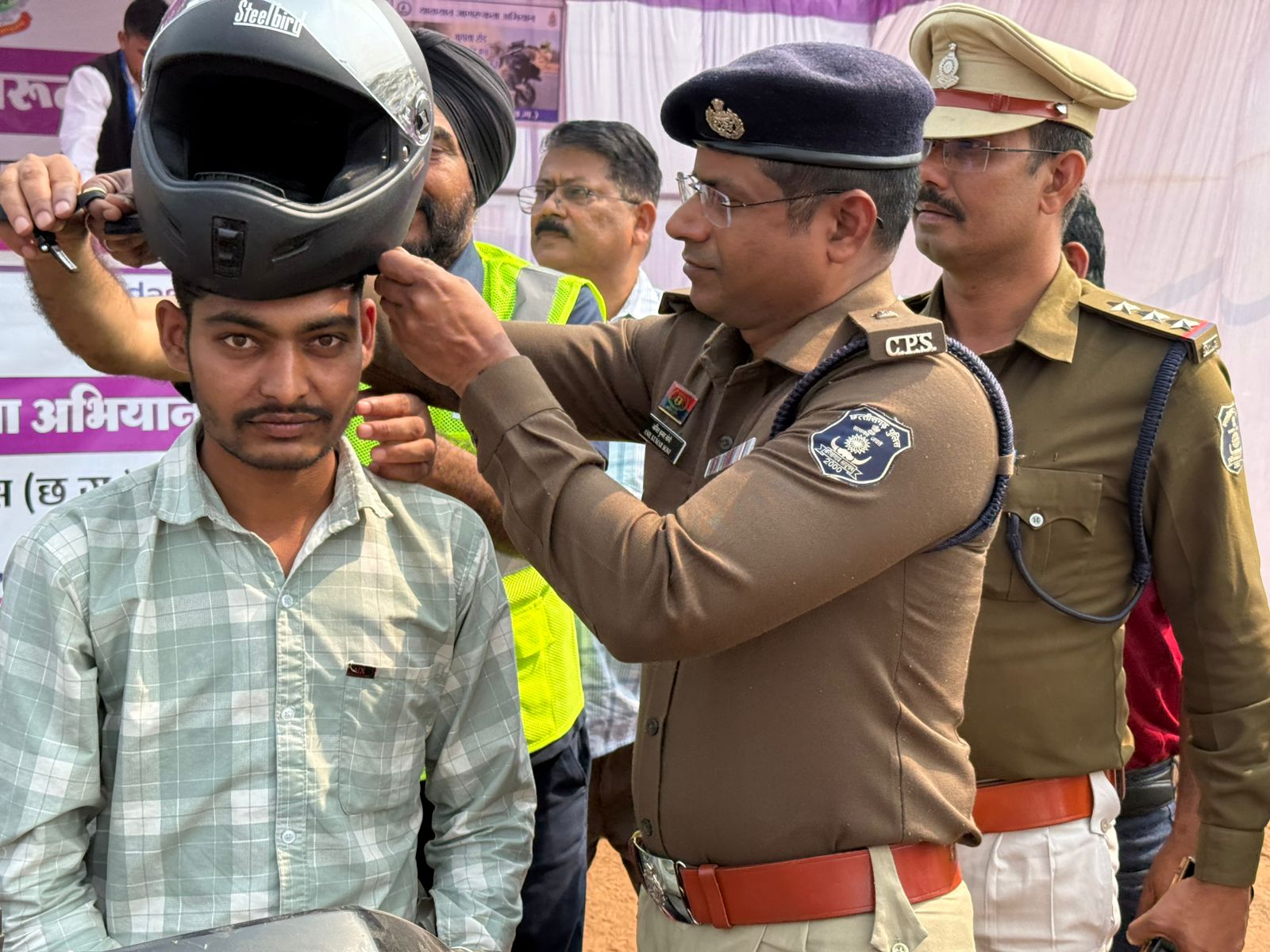 *रायगढ़, 28 जनवरी* । सड़क सुरक्षा माह 2026 के अंतर्गत वरिष्ठ पुलिस अधीक्षक रायगढ़ श्री शशि मोहन सिंह के दिशा निर्देशन में जिले में सड़क दुर्घटनाओं में कमी लाने तथा आम नागरिकों को यातायात नियमों के प्रति जागरूक करने हेतु दिनांक 01.01.2026 से 31.01.2026 तक विशेष अभियान चलाया जा रहा है। इस दौरान रायगढ़ पुलिस विविध जागरूकता कार्यक्रमों के माध्यम से आमजन के मध्य पहुंचकर यातायात नियमों के पालन एवं उनके महत्व की जानकारी दे रही है, जिससे नागरिक सुरक्षित रह सकें और भावी दुर्घटनाओं से बचाव हो सके। इसी क्रम में आज राष्ट्रीय राजमार्ग 153 अंतर्गत ग्राम तेतला में यातायात पुलिस रायगढ़ द्वारा बिना हेलमेट दुपहिया वाहन चलाने वालों पर मोटर व्हीकल एक्ट के तहत चालानी कार्यवाही की गई तथा उन्हें हेलमेट की उपयोगिता बताते हुए नि:शुल्क हेलमेट प्रदान किए गए। जिला पुलिस द्वारा सड़क सुरक्षा जागरूकता के तहत लगातार ऐसे कार्यक्रम आयोजित कर बिना हेलमेट वाहन चालकों को हेलमेट वितरित किए जा रहे हैं। आज नेशनल हाईवे 153 पर हेलमेट के महत्व पर आधारित विशेष जागरूकता कार्यक्रम का आयोजन किया गया, जिसमें चालानी कार्यवाही उपरांत वाहन चालकों को नि:शुल्क हेलमेट वितरित किए गए। इस अवसर पर एडिशनल एसपी श्री अनिल सोनी एवं ट्रैफिक डीएसपी श्री उत्तम प्रताप सिंह ने स्वयं वाहन चालकों को हेलमेट प्रदान कर उसके नियमित उपयोग का महत्व समझाया। वरिष्ठ पुलिस अधीक्षक श्री शशि मोहन सिंह ने आम जनता से अपील करते हुए कहा कि जिंदगी अमूल्य है, इसे थोड़ी सी लापरवाही से जाया न करें। स्वयं की सुरक्षा के लिए यातायात नियमों का पालन करें तथा जब भी दुपहिया वाहन चलाएं, हेलमेट अवश्य धारण करें। इस दौरान एडिशनल एसपी श्री अनिल सोनी एवं ट्रैफिक डीएसपी श्री उत्तम प्रताप सिंह के साथ थाना प्रभारी पुसौर निरीक्षक रामकिंकर यादव सहित थाना यातायात एवं थाना पुसौर का स्टाफ भी उपस्थित रहा। कार्यक्रम को सफल बनाने में अडानी ग्रुप का विशेष सहयोग रहा। यातायात जागरूकता के क्रम में कल महिला समूह के साथ महिला पुलिसकर्मियों का हेलमेट जागरूकता रैली का आयोजन किया जाएगा।