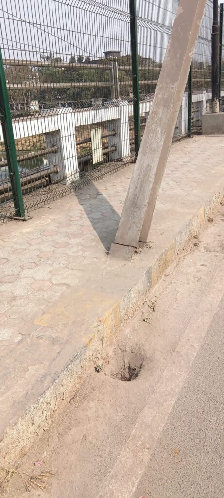 रायगढ़/ शहर के केलो ब्रिज पर लगे एक पोल की स्थिति को देखकर गंभीर सवाल खड़े हो रहे हैं। जहां वर्तमान में भारी भरकम पोल के खंभों को काटे जाने के निशान आसानी से देखे जा सकते है।मानो पोल को काटकर चोरी कर ले जाने का प्रयास किया जा रहा हो ।परन्तु आश्चर्य की जो मार्ग शहर के व्यवस्तम मार्गो में शुमार हो वहां ऐसी घटनाओं को अंजाम दिया जाना शहर की सुरक्षा व्यवस्था पर ही सवालिया निशान खड़ा कर रहा है।पोल के निचले हिस्से में कट के स्पष्ट निशान नजर आ रहे हैं, जिससे यह आशंका और भी गहराती है कि किसी असामाजिक तत्व ने इसे नुकसान पहुंचाने की कोशिश की है।जिसके काटे जाने और कमजोर होने पर किसी बड़ी दुर्घटना की आशंका से भी इंकार नहीं किया जा सकता है।
