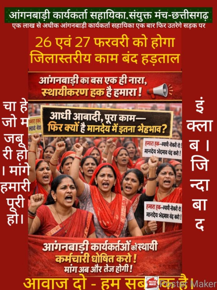 छत्तीसगढ़ के पच्चास हजार से भी ज्यादा आंगनबाड़ी केन्द्रो मे दिनांक 26 एवं 27 फरवरी को एक बार फिर से लटकने जा रहा है ताला.