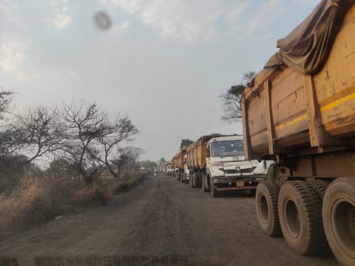 कोयले के ट्रकों से जाम हुआ राबर्टसन-भालूनारा मार्ग, ग्रामीणों की बढ़ी परेशानी -प्रशासन से सख्त कार्रवाई की मांग